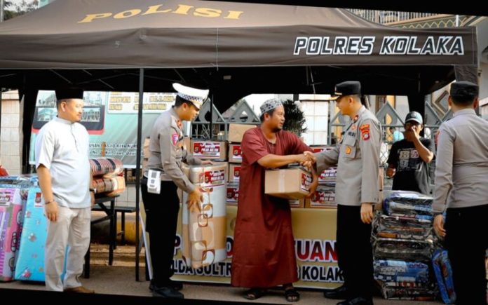 Kolaka, Trimediasultra.com – Peduli dan prihatin terhadap masyarakat Dawi-dawi yang tertimpa musibah kebakaran personel Polres Kolaka dan Polda Sultra menyerahkan bantuan kemanusiaan dari Polri, Minggu, 29 Januari 2023.