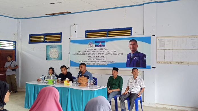 Seperti yang dilakukan oleh salah satu anggota DPRD Butur, Mazlin. Pada reses masa sidang pertama tahun sidang 2022-2023, ia turun menyambangi warga Kelurahan Lakonea Kecamatan Kulususu beberapa waktu lalu.