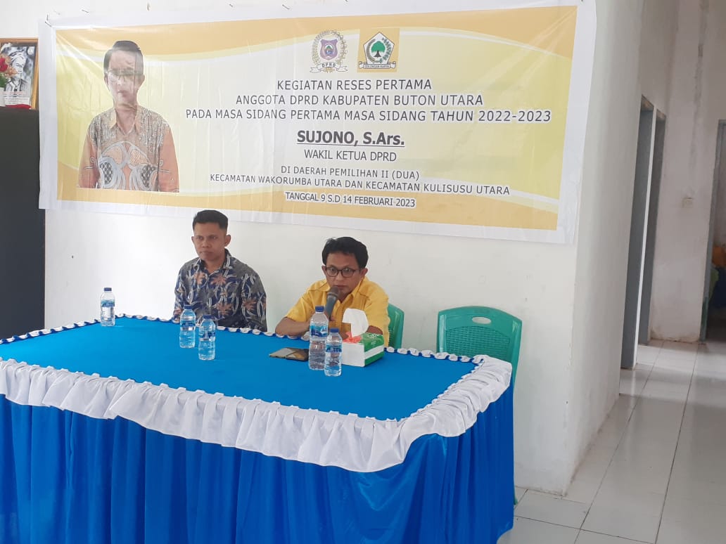 Salah satu Anggota DPRD Butur, dari dapil 3 (Kecamatan Kulisusu Utara dan Wakorumba Utara), Sujono, pada reses kali ini menyambangi masyarakat di dua titik, yakni Desa Labuan Bajo dan Lasiwa, Wakorumba Utara (Wakorut).