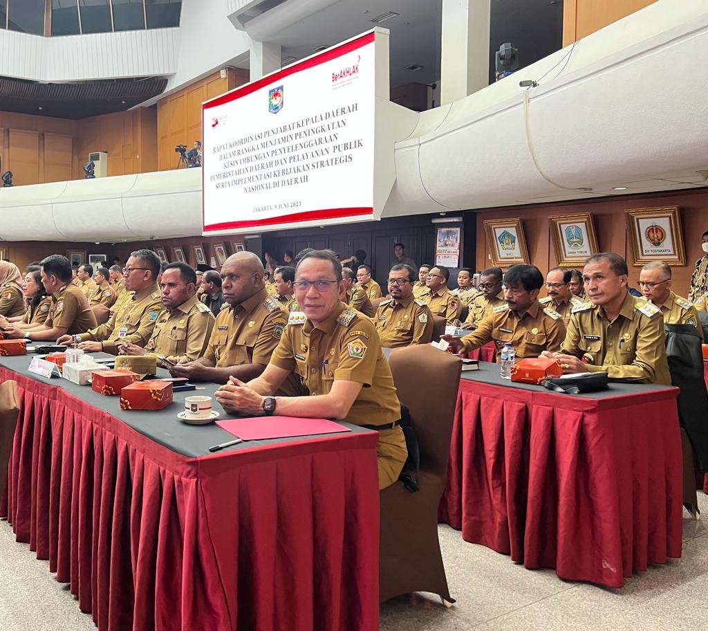 Jakarta, Trimediasultra.com – Penjabat (Pj) Bupati Buton, Basiran menghadiri Rapat Koordinasi (Rakor) yang digelar Kemendagri. Rakor tersebut digelar dalam rangka meminta Kepala Daerah untuk mewujudkan budaya organisasi yang berorientasi pada pelayanan dengan menerapkan budaya kerja BerAkhlak.
