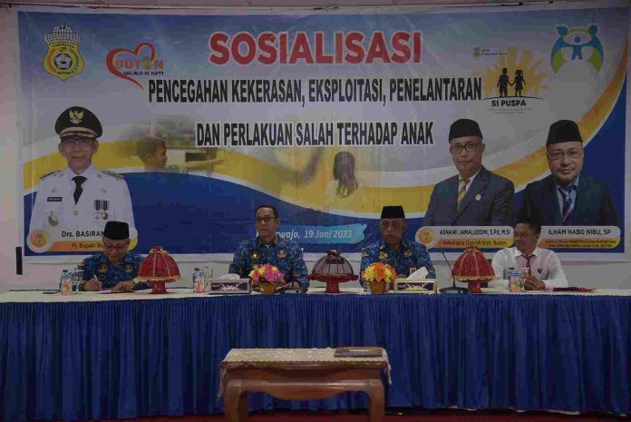Penjabat (Pj) Bupati Buton, Basiran pimpin kegiatan sosiali pencegahan kekerasan, eksploitasi, penelantaran dan perlakuan salah terhadap anak (Foto : ist).