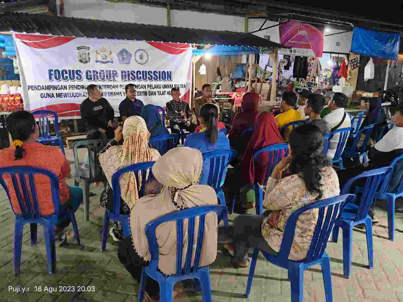 Langkah awal kata Sastra, Kadin bersama dengan Polda Sultra dan Perumda Pasar Kota Kendari melakukan pertemuan dengan para pedagang Pasar Wayong melalui Focus Group Discussion (FGD) pada Jumat malam 18 Agustus 2023 di Pasar Wayong.