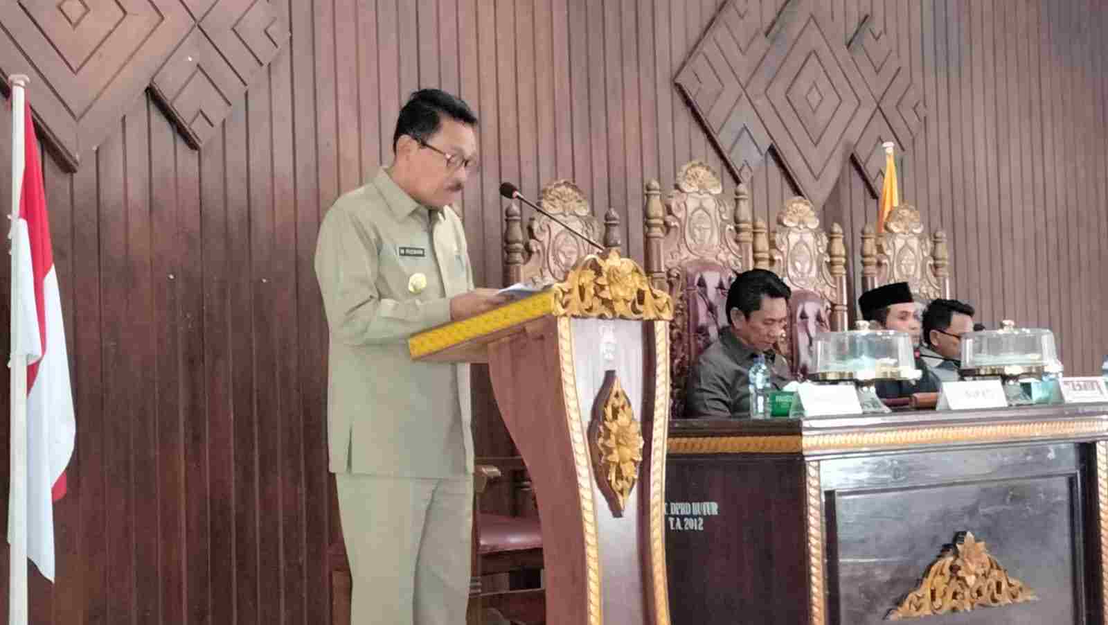 Bupati Buton Utara Dr. Muhammad Ridwan Zakariah, M. Si saat menjelaskan pokok-pokok struktur Pendapatan, Belanja dan Pembiayaan Daerah terkait rancangan KUA dan PPAS atas perubahan APBD Kabupaten Buton Utara Tahun Anggaran 2023 (Foto:Hamsil Humas Pemda Butur).