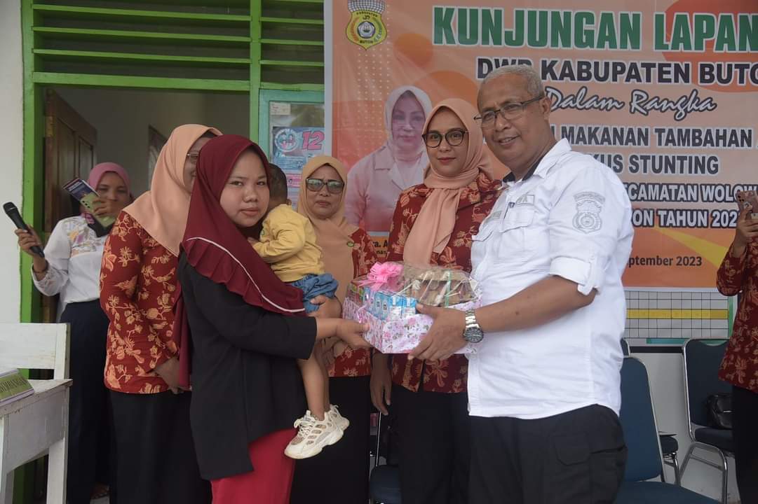 Buton, Trimediasultra.com – Pemerintah Kabupaten Buton melalui Dharma Wanita Persatuan (DWP) gagas program pemberian paket makanan tambahan pada anak yang beresiko stunting, guna mempercepat penanganan penurunan angka stunting.
