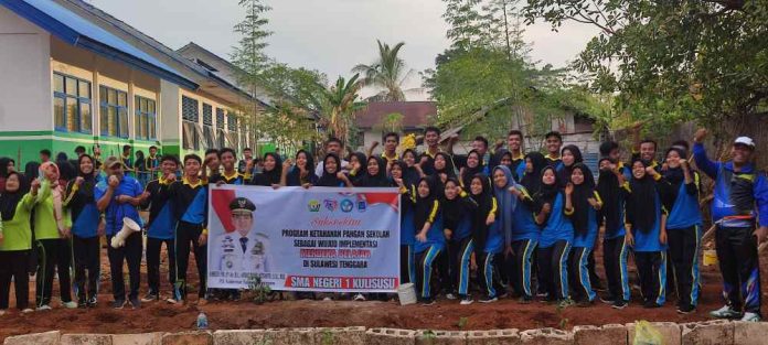 Butur, Trimediasultra.com – Dalam rangka mendukung program nasional di bidang Ketahanan Pangan (Ketapang). Sebanyak 917 orang siswa, 72 orang guru dan tenaga Tata Usaha, serta Dharma Wanita Persatuan (DWP) SMAN 1 Kulisusu, Kabupaten Buton Utara berpartisipasi melakukan aksi menanam 18.680 bibit tanaman holtikultura.