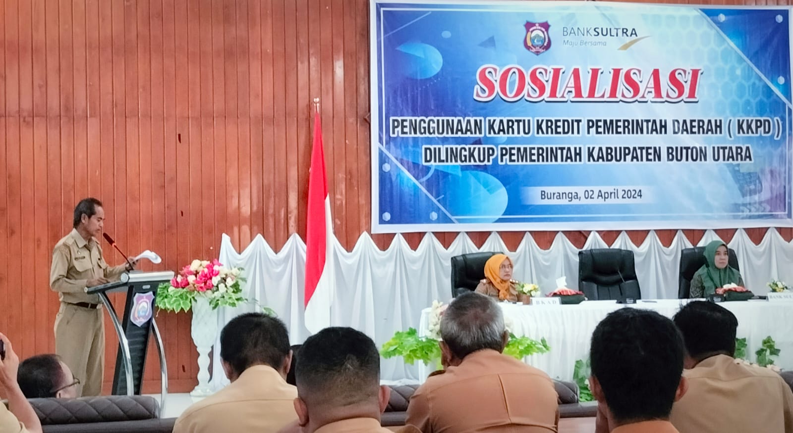Butur, Trimediasultra.com – Bank Pembangunan Daerah (BPD) Sulawesi Tenggara (Sultra) cabang Ereke mensosialisasikan penggunaan Kartu Kredit Pemerintah Daerah (KKPD) yang diikuti oleh para Kepala Perangkat Daerah, Lurah, Dirut RSUD, serta Kepala UPTD dan Lurah Bendahara Pengeluaran dan Bendahara Pengeluaran Pembantu, di Aula Kantor Bappeda, Senin, 2 April 2024.