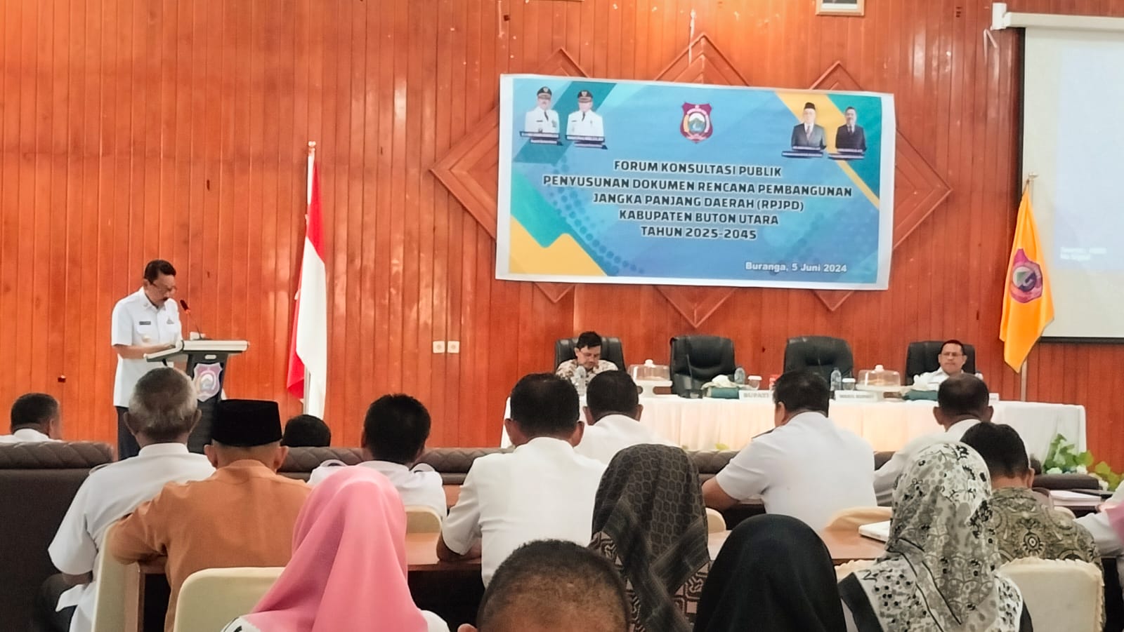 Butur, Trimediasultra.com – Pemerintah Daerah (Pemda) Kabupaten Buton Utara (Butur) melalui Badan Perencanaan Pembangunan Daerah (Bappeda) gelar Forum Konsultasi Publik Penyusunan Rencana Pembangunan Jangka Panjang Daerah (RPJPD).