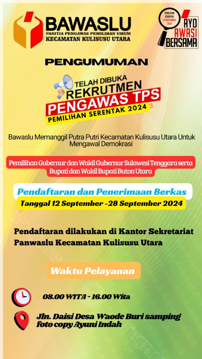 Rekrutmen PTPS Pilkada Serentak Tahun 2024 Zona Kulisusu Utara.