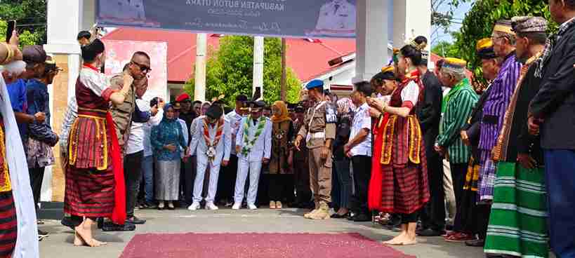 Suasana penyambutan Bupati dan Wakil Bupati Butur, Afirudin Mathara dan Rahman di Rujab Kamali.