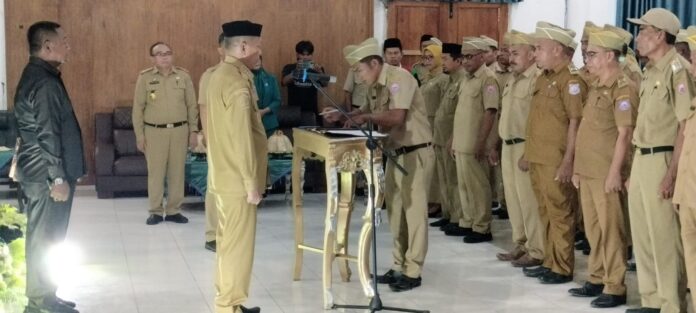 Butur, Trimediasultra.com – Bupati Buton Utara (Butur) Afirudin Mathara, resmi melantik 40 orang Penjabat (Pj) kepala desa (kades). Pelantikan dan pengucapan sumpah dilangsungkan di Aula Kantor Bappeda setempat, Senin, 21 April 2025.