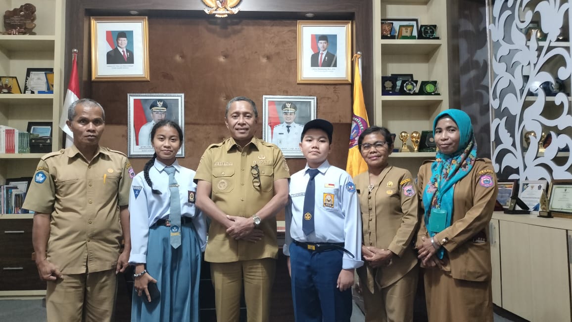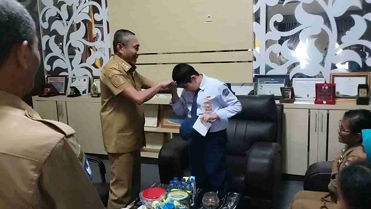Di Kantor Bupati Butur, Syulthan Aqbar hadir bersama orang tua Ibu dan kakak kandung yang juga pelajar SMA didampingi guru wali kelasnya menerima penghargaan berupa uang tunai dari Bupati Butur untuk keperluan sekolah.(Adm/M2/H4m).