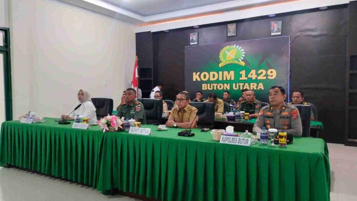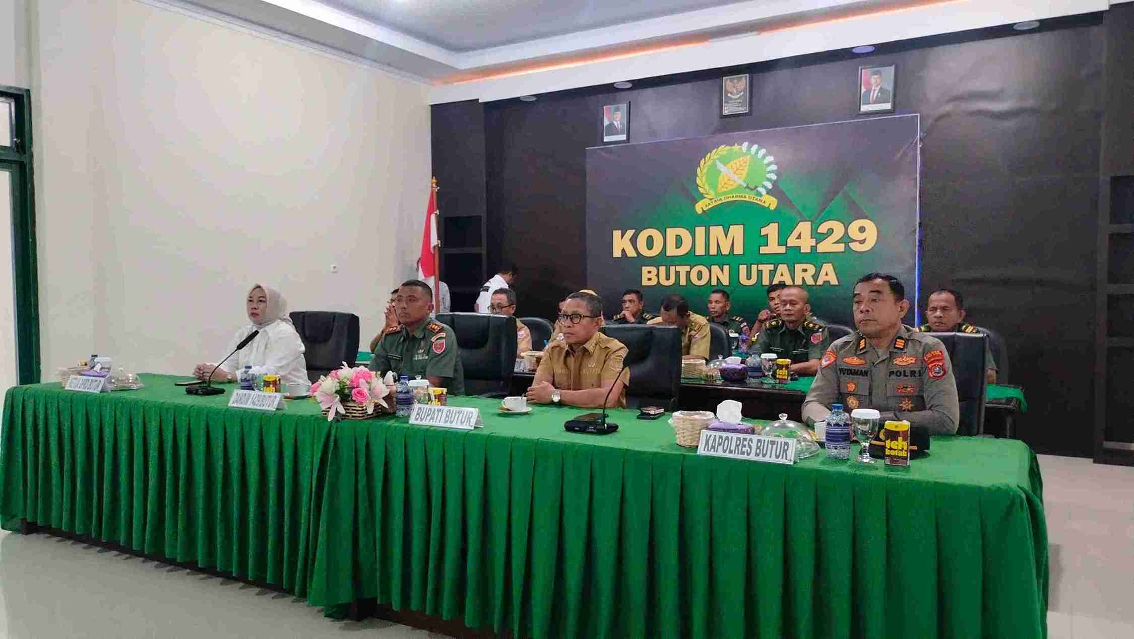 Dalam rapat yang digelar secara hybrid itu, Afirudin Mathara tidak sendiri, ia didampingi oleh Dandim 1429, Letkol Inf. Acuk Andrianto serta Wakil Ketua DPRD Fatriah dan Kabag Ren Polres Butur AKP Yutaman Pontengi bertempat di ruangan rapat Makodim 1429 Butur.