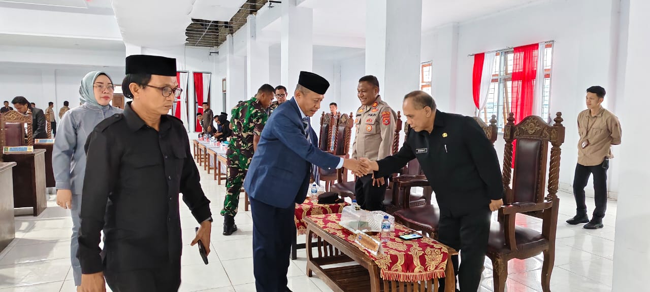 Wakil Ketua I DPRD Butur Sujono bersama Bupati Buton Utara Afirudin Mathara salami peserta rapat baik dari unsur Forkopimda dan Kepala OPD.