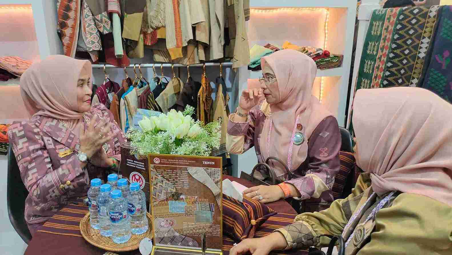 Kekompakan dan kolaborasi Ketua Dekranasda Provinsi Sultra Arinta Nila Hapsari Andi Sumangerukka bersama seluruh Ketua Dekranasda Kabupaten Kota se-provinsi Sulawesi Tenggara, terlihat saat mengenakkan atribut Dekranas lengkap sambil berdiskusi dan mengecek kelengkapan atribut satu sama lainnya.