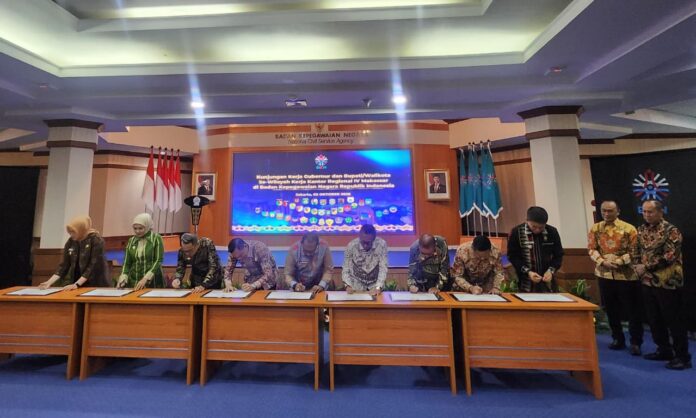 “Hari ini saya menandatangani komitmen pembangunan meritokrasi instansi daerah se-wilayah kerja Kantor Regional IV Badan Kepegawaian Nasional,” kata Bupati Butur, Afirudin Mathara